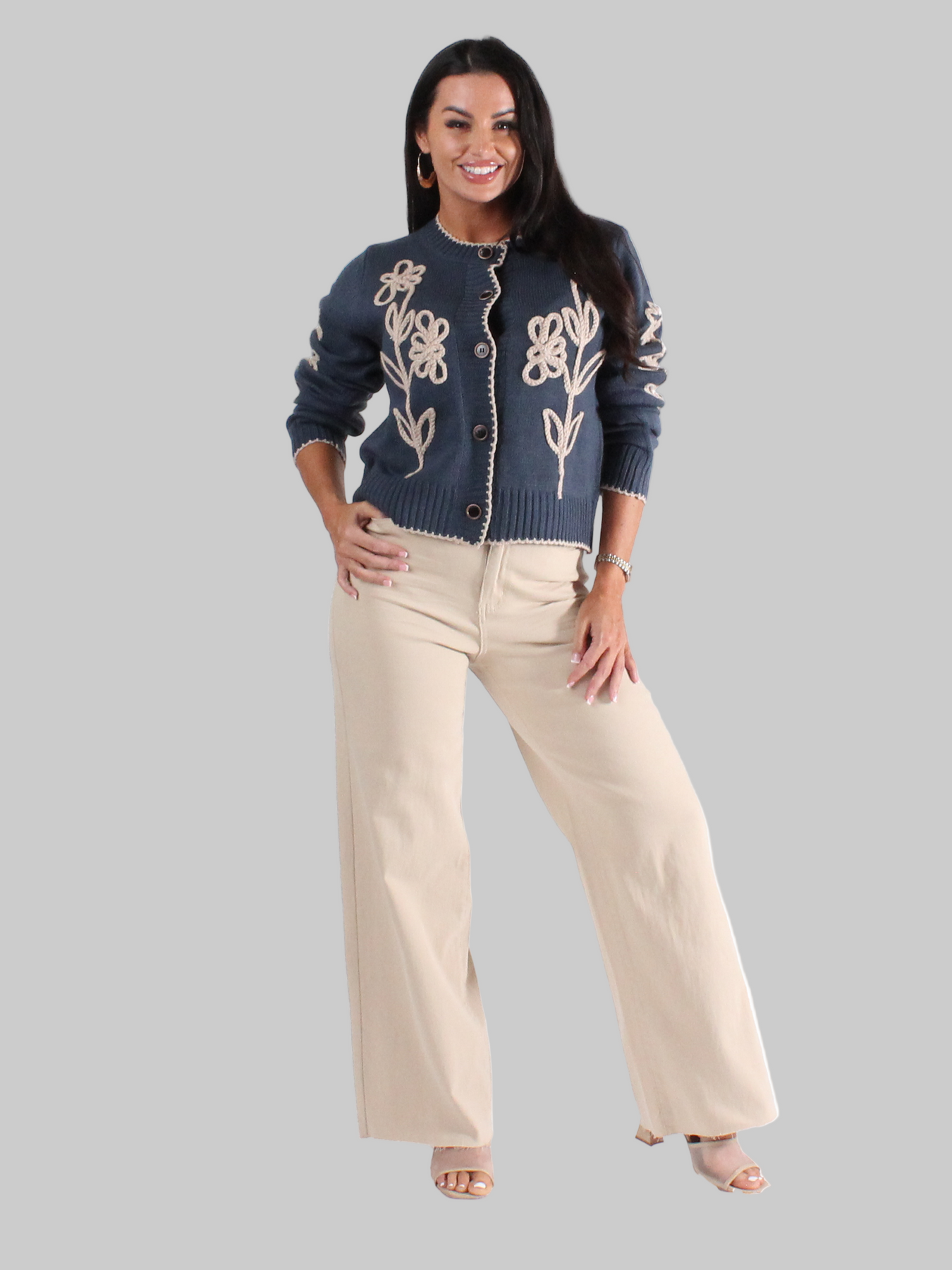 The Heidi Knit Cardigan stands out with its unique design featuring contrasting floral embroidery that adds a touch of elegance to any outfit. Crafted for comfort and style, this cardigan effortlessly elevates your look, making it a versatile piece perfect for layering on cooler days.