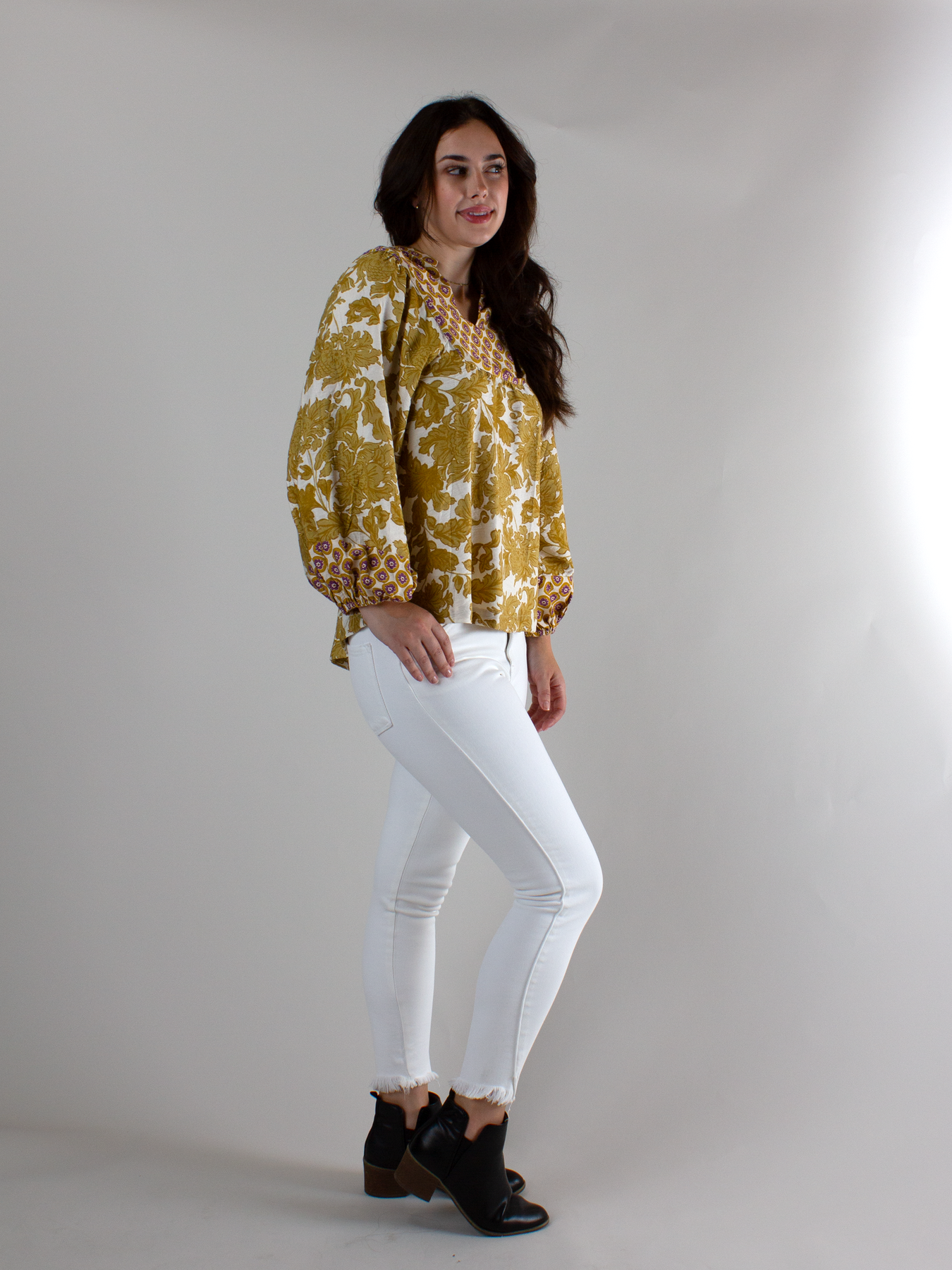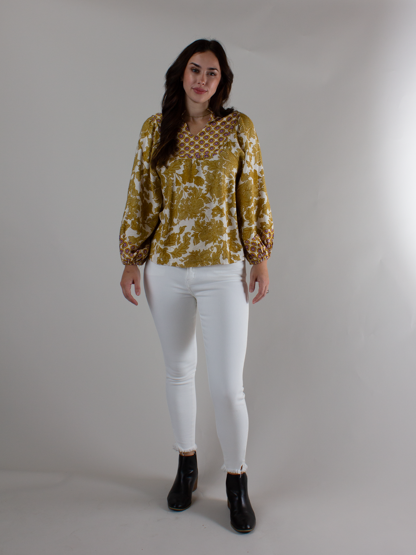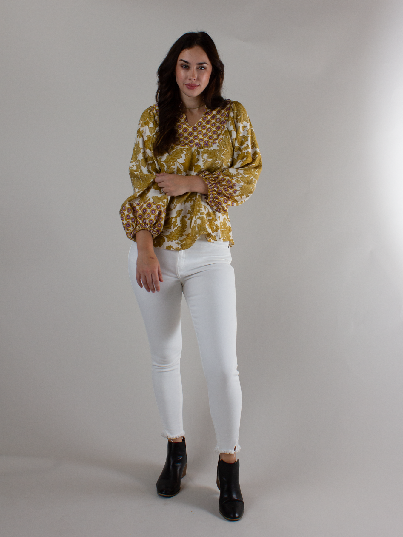 Brighten your wardrobe with the Abstract Mix Top in mustard yellow, featuring a unique abstract pattern that adds an artistic touch to any outfit. Its vibrant color and eye-catching design make it perfect for standing out while staying comfortable and stylish throughout your day. Elevate your look effortlessly with this versatile top designed to inspire confidence and creativity.