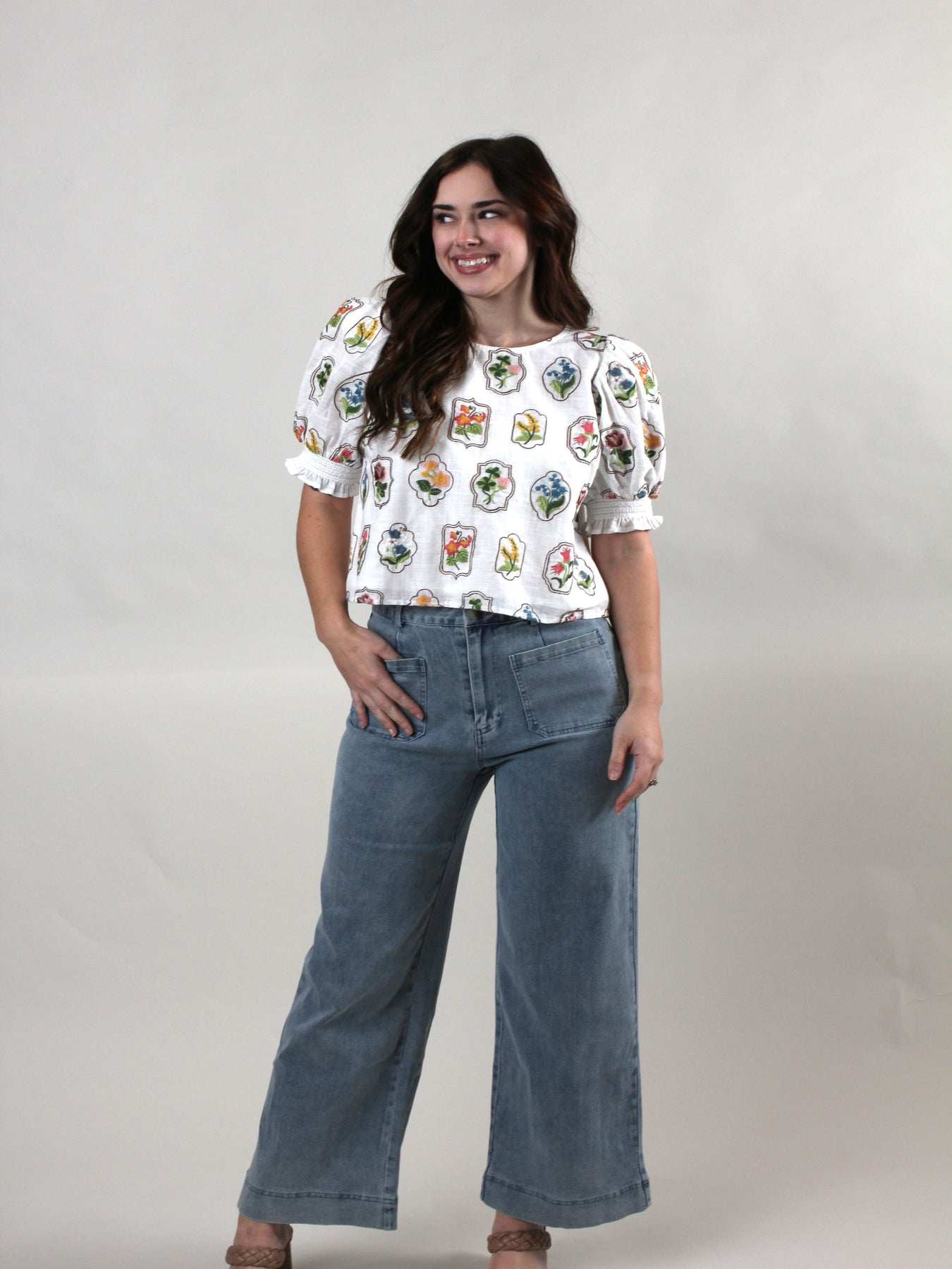 The Claire Top is your new go-to for effortless charm. Crafted from 100% cotton, this blouse features delightfully puffy lined sleeves and intricate embroidery that adds personality to any outfit. Whether you're dressing up for brunch or keeping it casual, this versatile piece brings a touch of whimsy and elegance to your wardrobe. Breathable, comfortable, and undeniably cute—the perfect way to express your style.