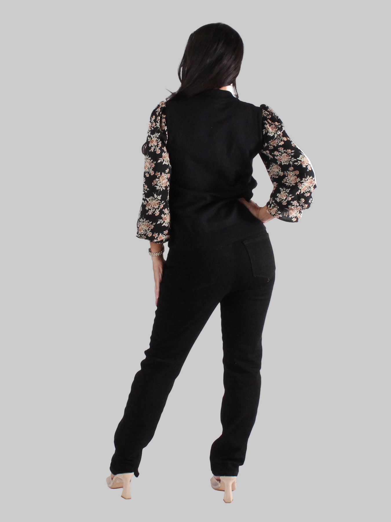 The Floral Knit Top offers a chic blend of cozy knit fabric and elegant floral bishop sleeves for a graceful silhouette. Perfect for both casual and dressy occasions, this blouse effortlessly elevates your look while providing comfort and style. Make a statement with this timeless, feminine piece.