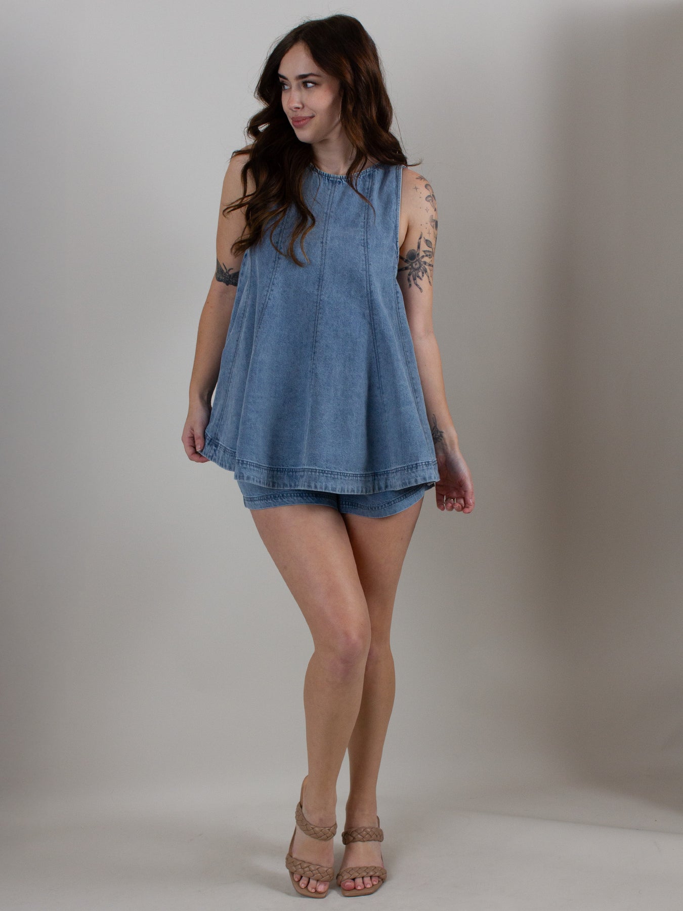 The Rue Top is your new go-to for effortless style. This sleeveless round neck beauty features a chic button-back design that adds just the right amount of personality to any outfit. Perfect for layering over your favorite tee or wearing solo on warmer days, it's versatile enough for casual weekends or dressed-up occasions. The relaxed fit keeps you comfortable while the thoughtful button details make it anything but boring. Grab yours and get ready to turn heads!