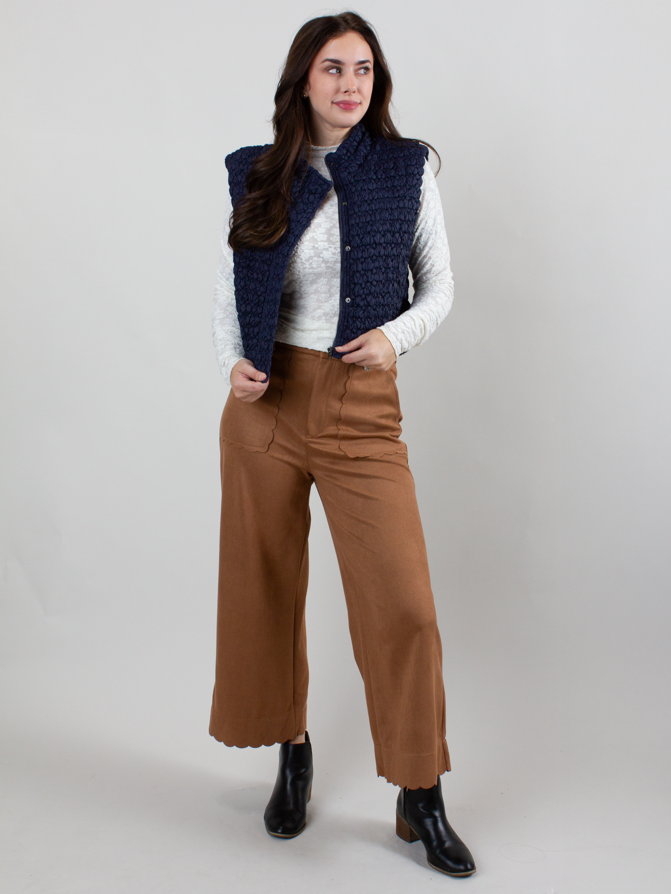 Stay warm and stylish this fall and winter with this navy quilt textured vest. Its cozy quilted design provides insulation without bulk, making it perfect for layering over your favorite sweaters or shirts. The classic navy color adds versatile appeal, easily pairing with casual or dressier looks. Lightweight yet practical, this vest is an ideal choice for chilly days when you need extra warmth and comfort. Elevate your seasonal wardrobe with this essential outer layer.